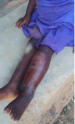 While out visiting a friend in a town 5 hours away, Sonko, one of our amazing Kenyan volunteers, noticed a child on the side of the road. Her legs were scabbed, crusted and turning colors. Upon further investigation, he finds she is two-and-a-half-year-old Shantel and she is no longer able to walk due to the condition of her legs. Shantel was abandoned by her mother when she was just 6 months old and no one knows who her father is. A neighbor has been looking after her since she was abandoned.